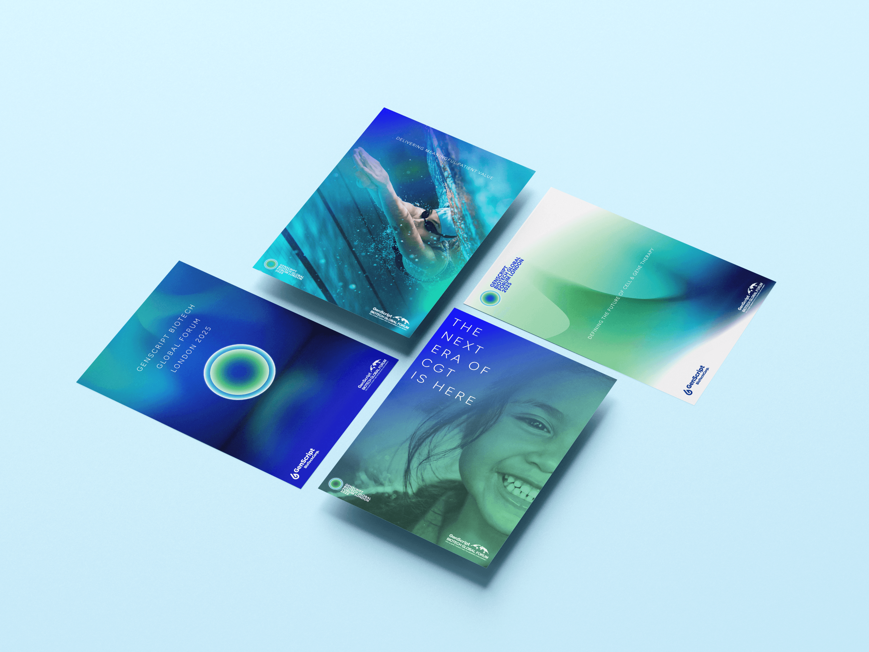 Reimagining the visual direction of GenScript Biotech Global Forum 2025 through human-centered storytelling and fluid design, translating complex cell and gene therapy science into emotionally resonant, patient-first communications.